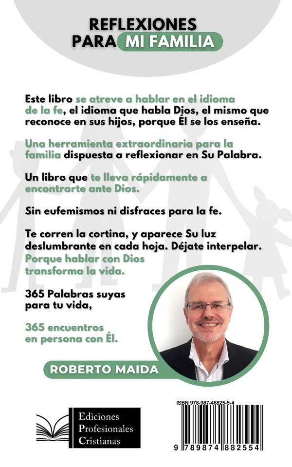 Este libro es un devocional con lecturas diarias para cada día del año. Basadas en textos de toda la Biblia, que aportan reflexiones útiles para las relaciones, la familia, y la vida personal. Expresan una espiritualidad y una fe directa, sencilla y personal, de alto contenido práctico y humano. Es un libro que se atreve a hablar en el idioma de la fe. El mismo idioma que habla Dios, el mismo que reconoce en sus hijos porque Él se los ha enseñado. Cualquiera sea tu situación, -familiar o no-, en pareja o soledad, este libro te lleva a encontrarte rápidamente ante Dios. Sin eufemismos para la fe: Te corren la cortina, y aparece su luz deslumbrante en cada hoja. Déjate interpelar. Porque hablar con Dios no te deja igual, jamás.